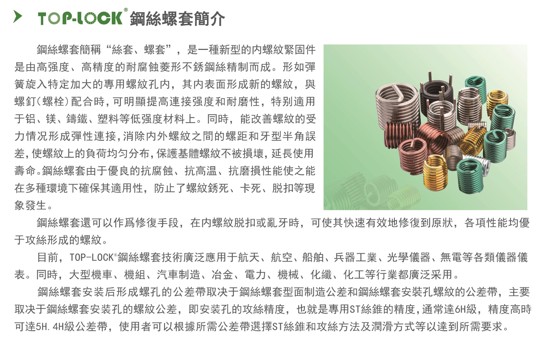TOP-LOCK M2-M20钢丝螺套 316L/304(具体价格请面议) 材质 | 不锈钢 | ||