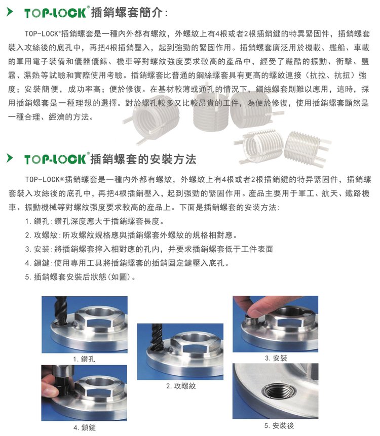 TOP-LOCK M4-M25插销螺套316L/304(具体价格请面议) 品牌 | TOPLOCK | ||