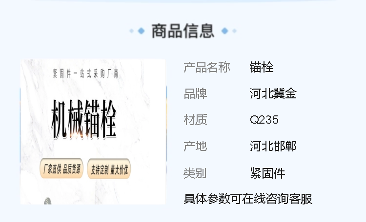 机械锚栓紧固件厂家货源品质保证一站式服务