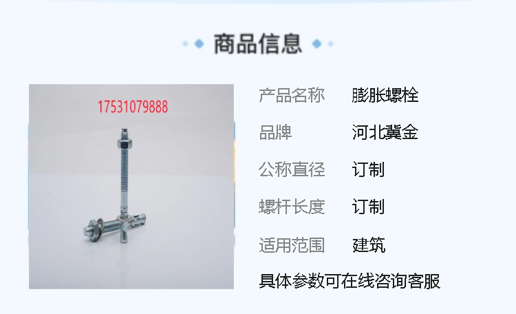 定制建筑专用膨胀螺栓连接紧固件镀锌颜色按尺寸定做