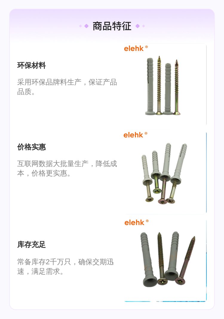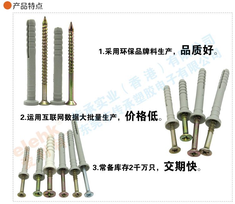 elehk/爱利科美标塑胶尼龙膨胀管30mm长现货紧固件销售 品牌 | elehk/爱利科 | ||