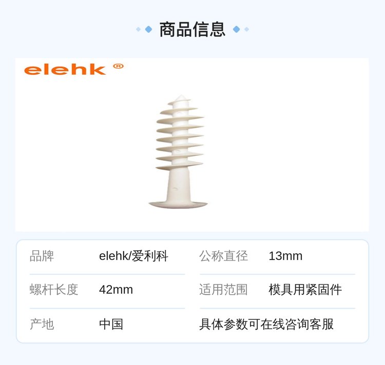 elehk/爱利科美标膨胀螺栓CN5091A 尼龙/POM材质 强力膨胀韧性好 品牌 | elehk/爱利科 | ||
