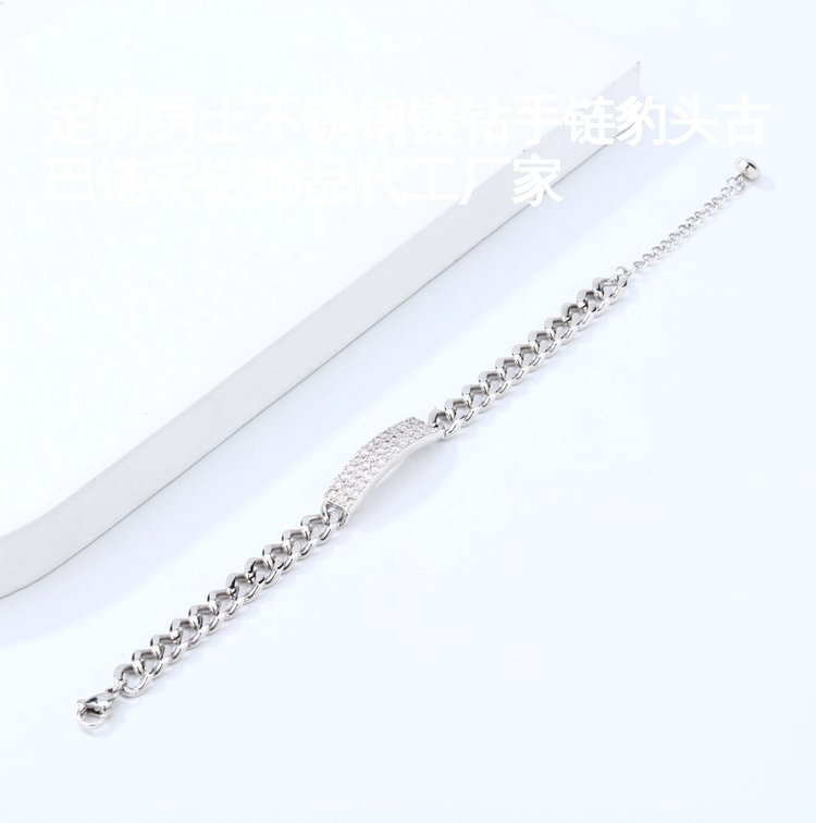 恒达鑫定制男士镶钻手链独特豹头古巴链设计