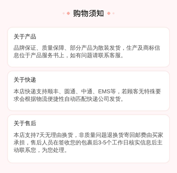 售后服务 | (根据实际情况填写,若无则不添加) | ||