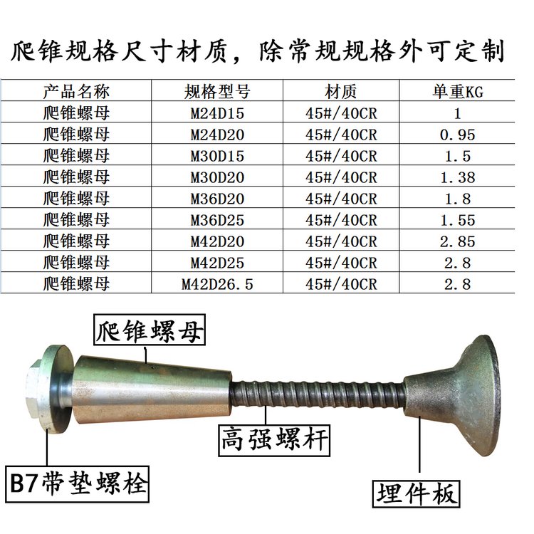 供应爬锥螺母镀锌爬升锥三槽锥体母10.9级高强度