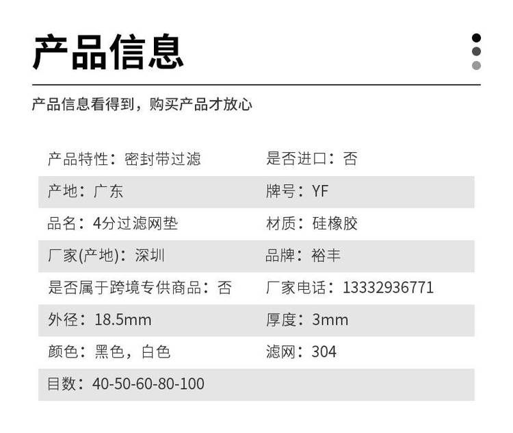 裕丰黑色4分硅胶过滤网垫片304滤网密封带过滤