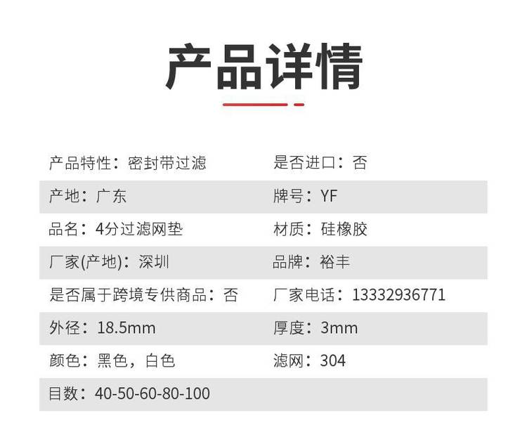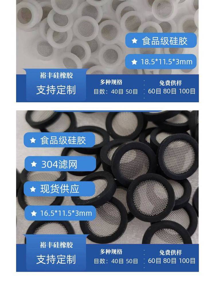 裕丰304滤网花洒垫圈硅胶材质密封带过滤黑色白色可选