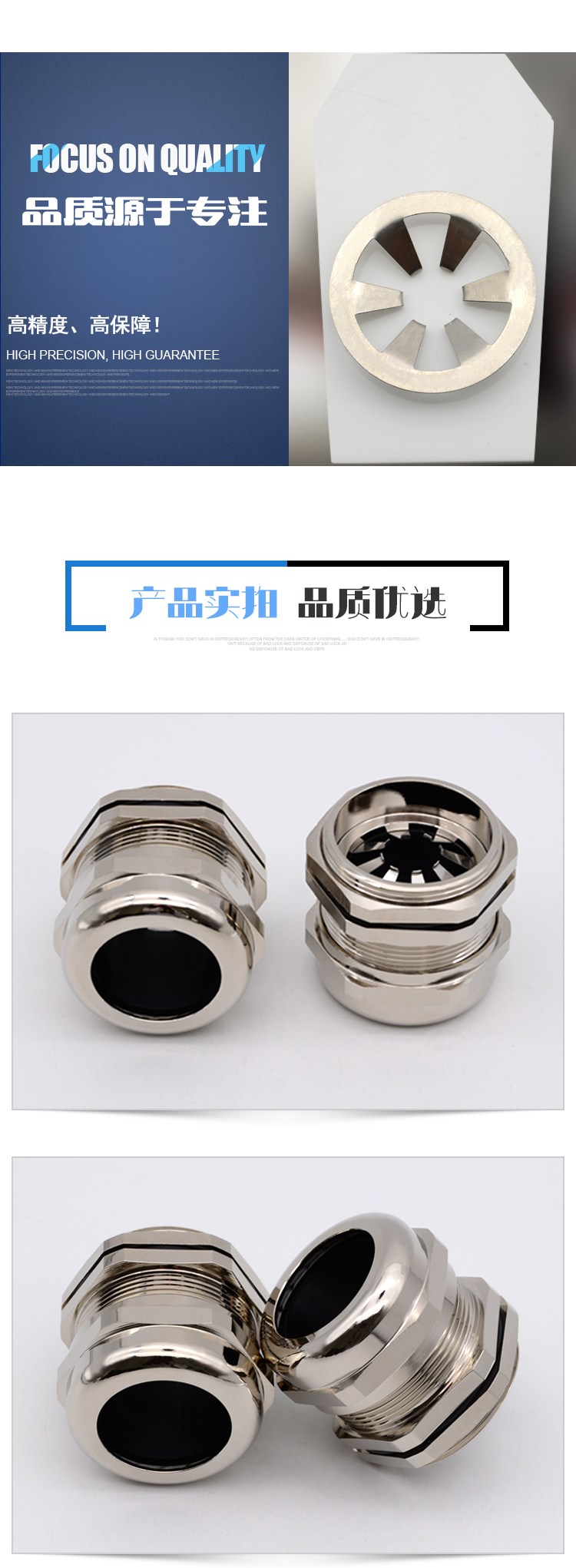 优势说明:采用黄铜材质精制而成,内置隔爆装置,具有独特的防爆功能,另有特殊夹紧爪与夹紧圈之设计,夹紧电缆范围大,抗拉力特强,可防水、防尘、耐弱酸、酒精,电缆锁紧采用填料密封,防护性能好.具有快捷安装,安全可靠,防护性能好,防爆性能优越等特点。。