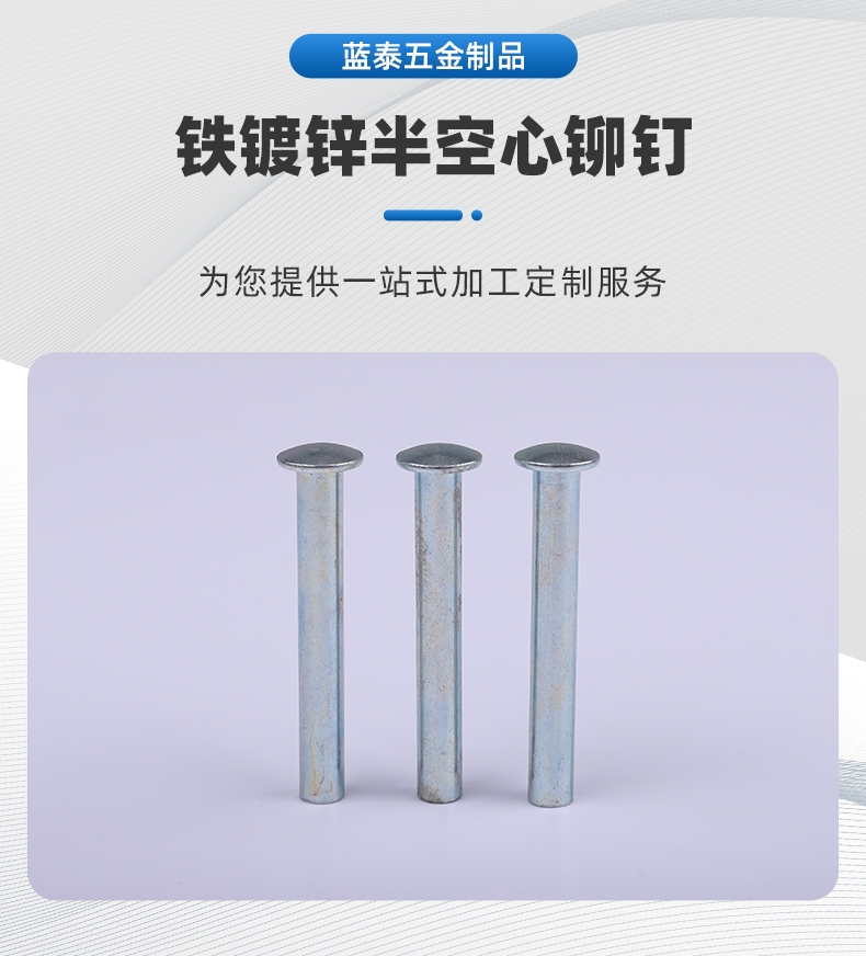 品名:? ? ? ?铁镀锌半空心铆钉