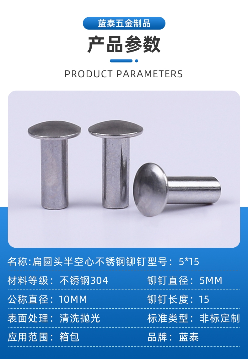 品名:? ? ? ?扁圆头半空心不锈钢铆钉