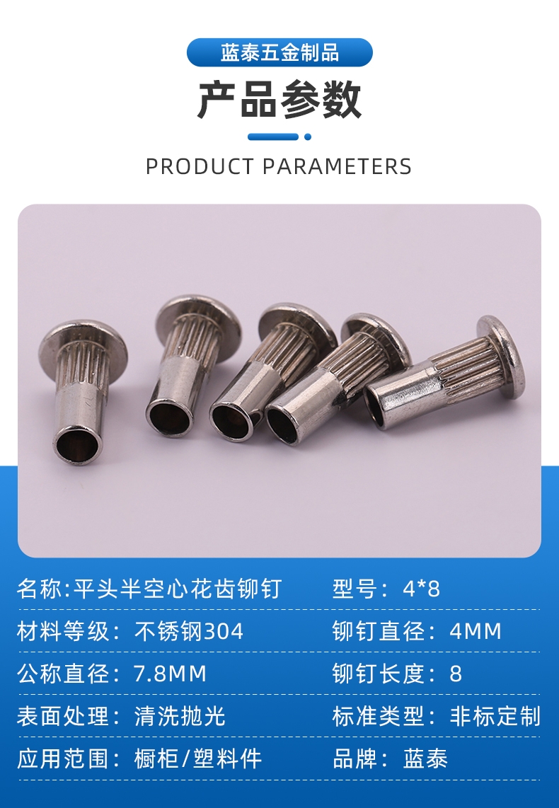平头铆钉 平头半空心铆钉 带花齿铆钉 直尺铆钉 不锈钢铆钉制造