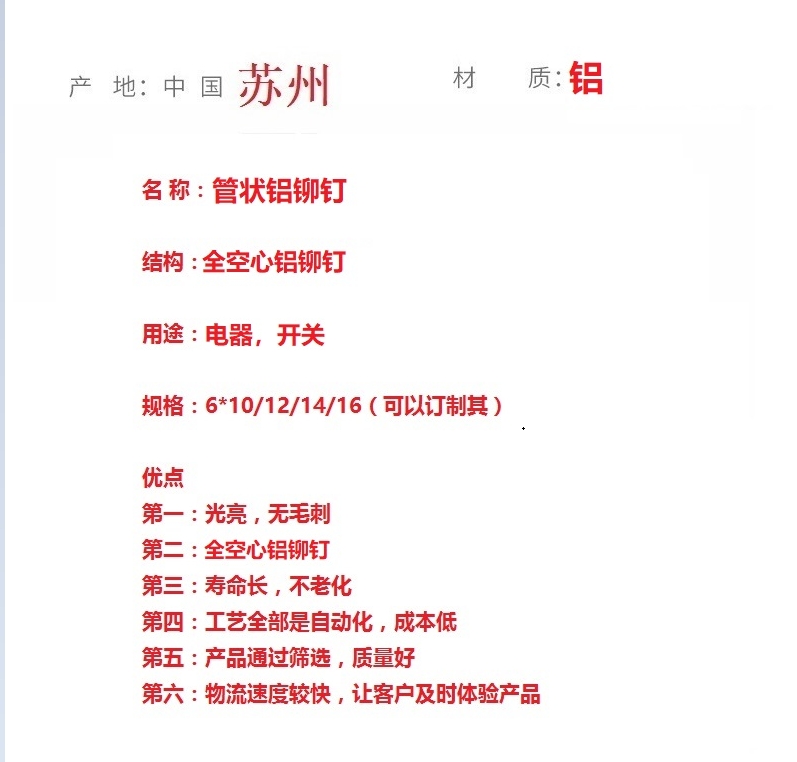 管状铝铆钉 全空心铝铆钉 铝合金管子 管状铆钉非标铆钉 非标定制 |