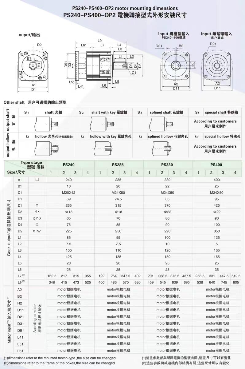PS142 190行星减速机器120PF160输出尺寸同130 150 180伺服电机