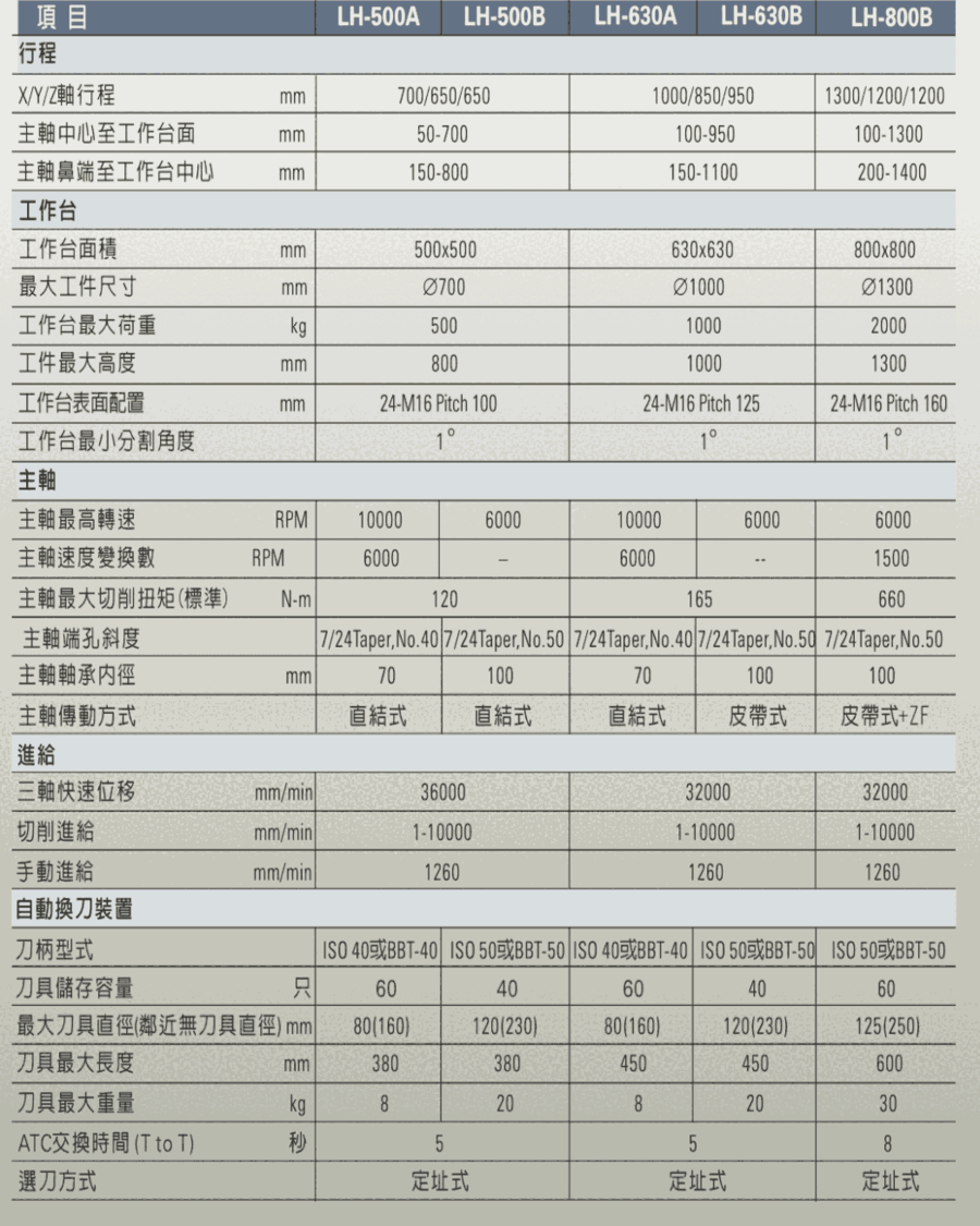 LH-300、LH-350A、LH-500A、LH-500B、LH-630A、LH-630B、LH-800B、LH-1000、LH-1250 |