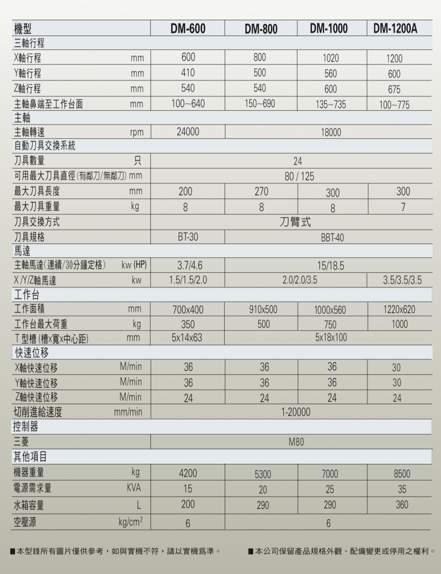 DM-600、DM-800、DM-1000、DM-1200A |