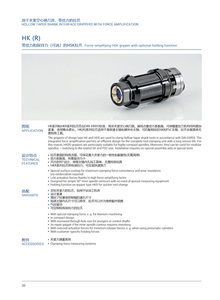 HKR型拉爪用于拉紧DIN69893标准的中空刀具。