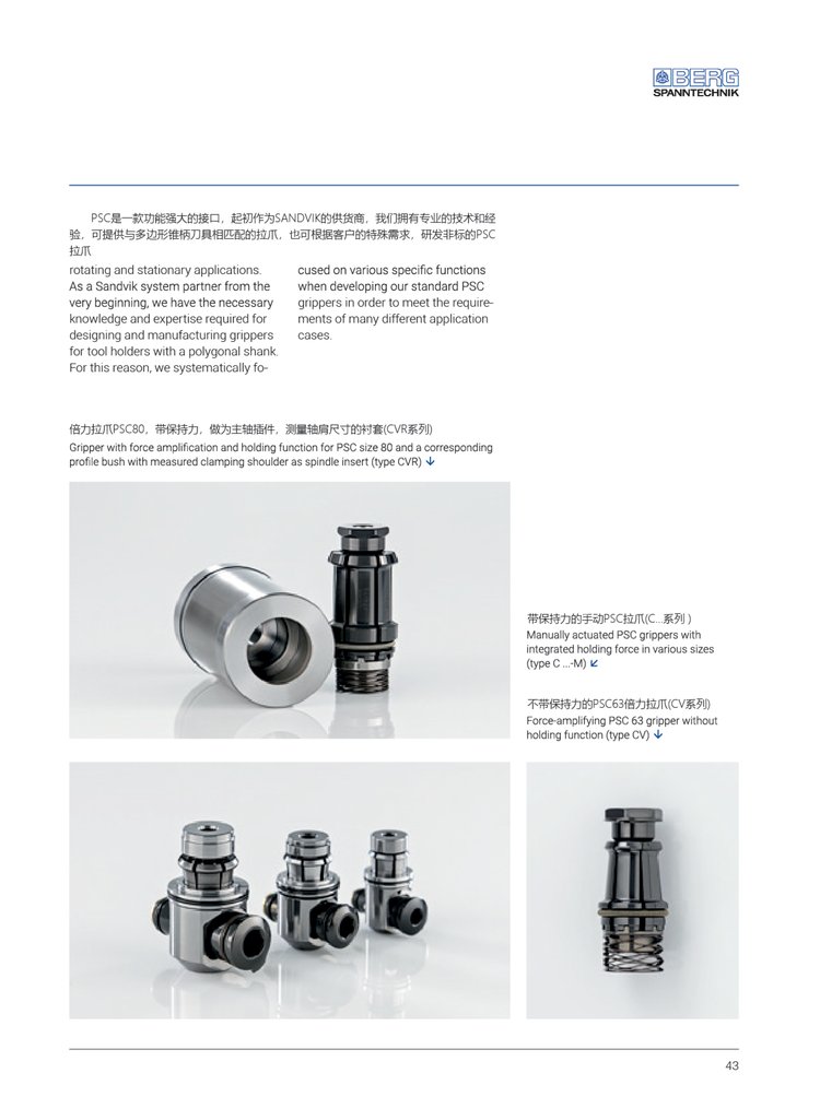 对于HSC工件的加工(高速切削)来说,DIN 69893标准的拉紧力明显不足。通过将拉爪直接抵在主轴内轮廓,使刀柄与主轴高刚性连接,从而达到设计大限,取决于有关受力面(横断面面积及其他传递力的表面)。BERG公司设计的HSH拉爪,拉紧力远远超过DIN 69893标准。