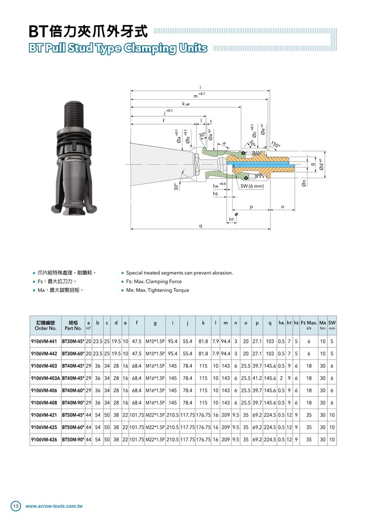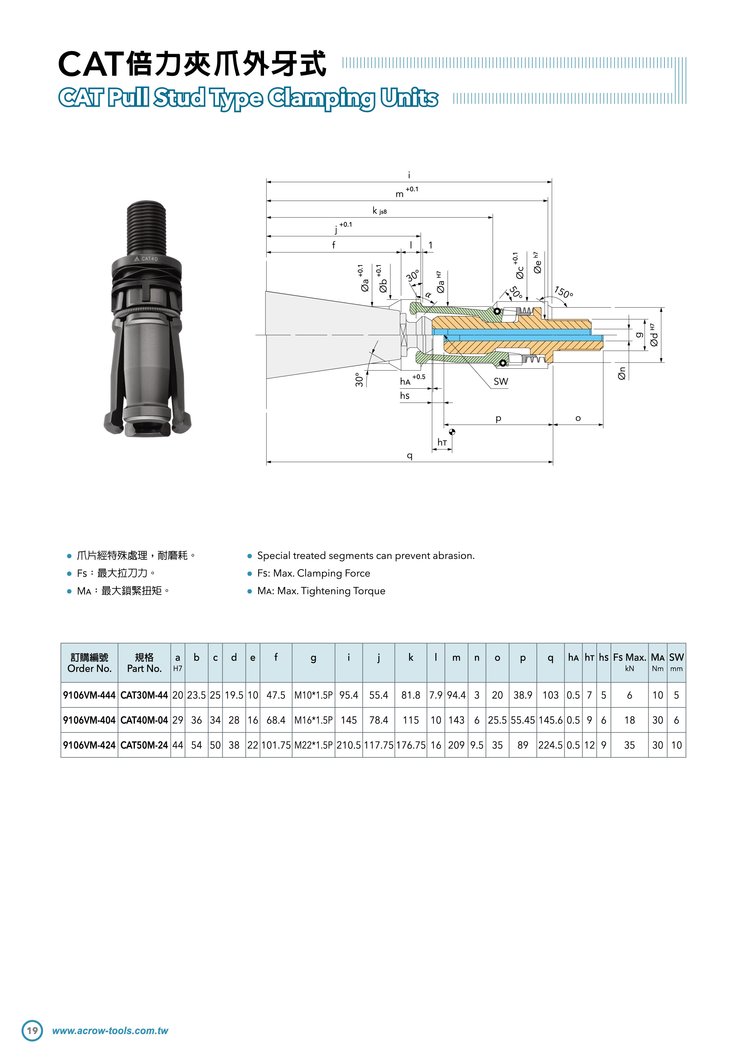 ACROW倍力夹爪BT内螺纹BT40F-60度四瓣爪拉刀爪