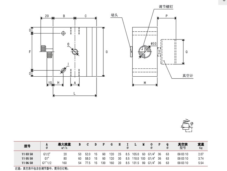 低压真空调节 | 最大口径G1 1/2英寸 | ||