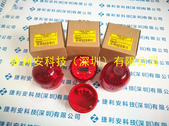 klaxon PSB-0002氙信号灯实物图具有红色或琥珀色透镜,带红色底座,深底座,110 V 和 230 V 时符合 EN54 标准。捷利安科技(深圳)有限公司优价供应电子电器、电工电气产品、安防劳保产品、五金工具、机械机电设备、仪器仪表等产品,原装进口,品质保障!多年来与众多国外供应商保持良好的合作关系,可以从工厂直接采购产品,极大的降低客户的采购成本,并不断地拓展供货渠道,尽量的满足客户需求。欢迎新老客户询价订购。