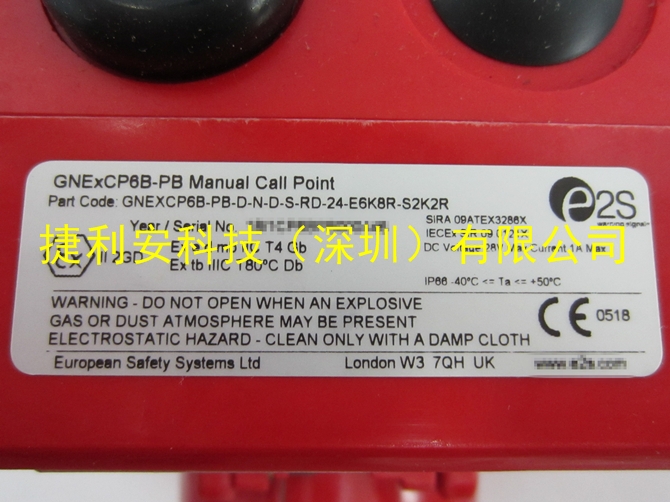 捷利安科技(深圳)有限公司具有优势的产品为:E2S GNExCP6B-PB系列手动报警按钮,如:E2S GNExCP6B-PB-D-N-D-S-RD-24-E6K8R-S2K2R,英国原装进口,假一赔十,欢迎询价订购。