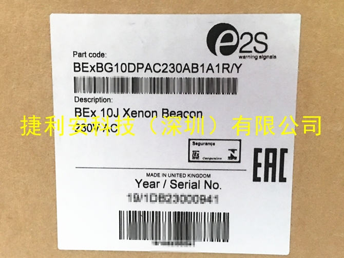 捷利安科技(深圳)有限公司优势供应英国E2S BExBG10系列产品:E2S BEXBG10DPAC230AB1A1R/Y防爆灯,黄色灯罩,英国原装进口,实物照片可看,假一赔十,欢迎询价订购。