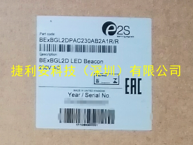 捷利安科技(深圳)有限公司长期供应英国E2S BExBGL2系列E2S BExBGL2DPAC230AB2A1R/R防爆信号灯,实物图可看,欢迎询价订购。