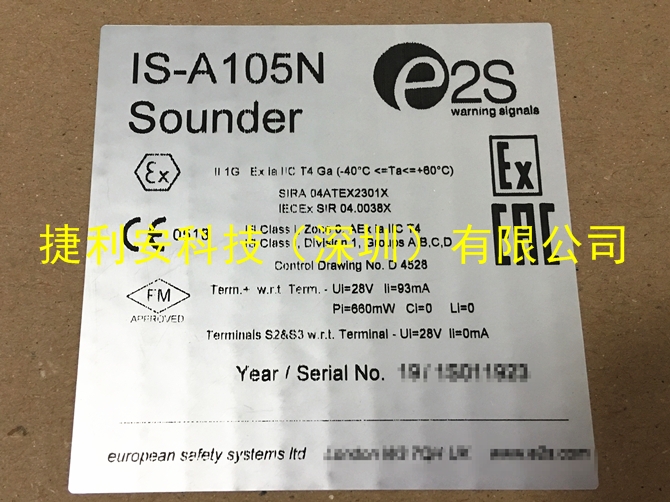 捷利安科技(深圳)有限公司优势供应英国E2S IS-A105N系列E2S IS-A105N-R警报器直销,原装进口,欢迎询价订购。
