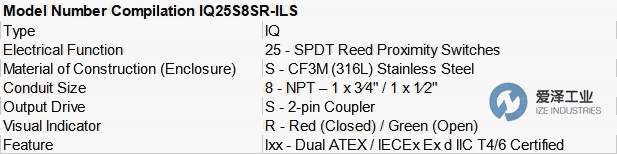IMTEX阀位监控器IQ25S8SR-ILS技术规格
