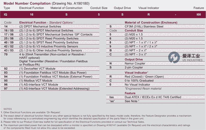 IMTEX阀位监控器IQ系列其他常用型号: