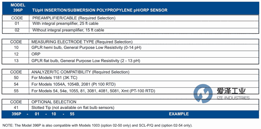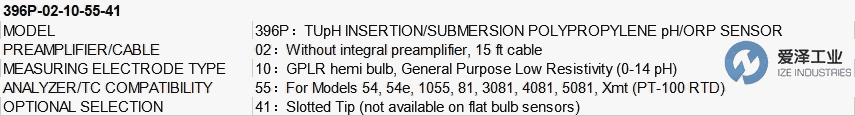 ROSEMOUNT PH传感器396P-02-10-55-41技术参数