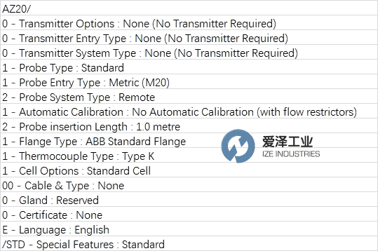 ABB氧化锆分析仪AZ20/.0.0.0.1.1.2.1.2.1.1.1.00.0.0.E./STD规格描述