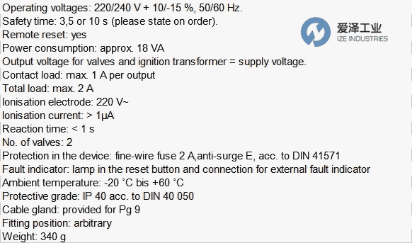 KROM SCHRODER燃烧控制单元IFS135系列技术参数