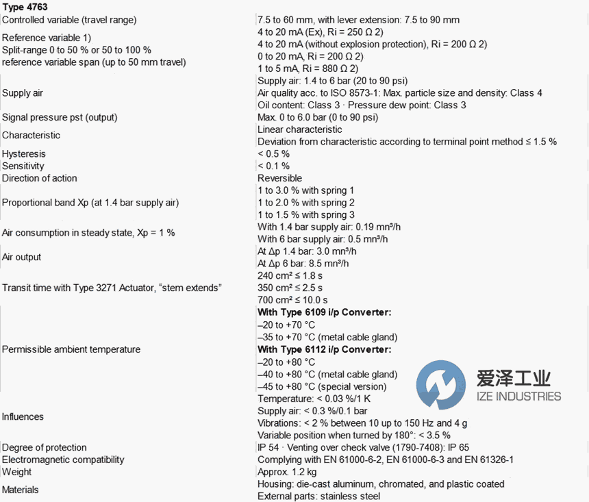 SAMSON定位器4763系列4763-01100121000000.04产品参数