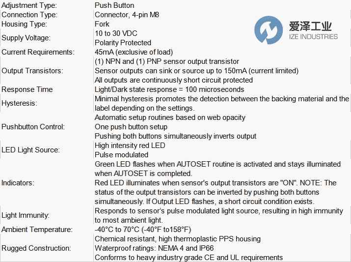 如果有任何关于TRI-TRONICS光电传感器LERC的疑问,请随时与我们沟通(021-31006702)。我们将尽全力解决您的问题。