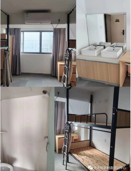 宿舍内部情况:4人/间,2张上下铺2个洗手池、独立卫浴、桌子、衣柜、空调、wifi