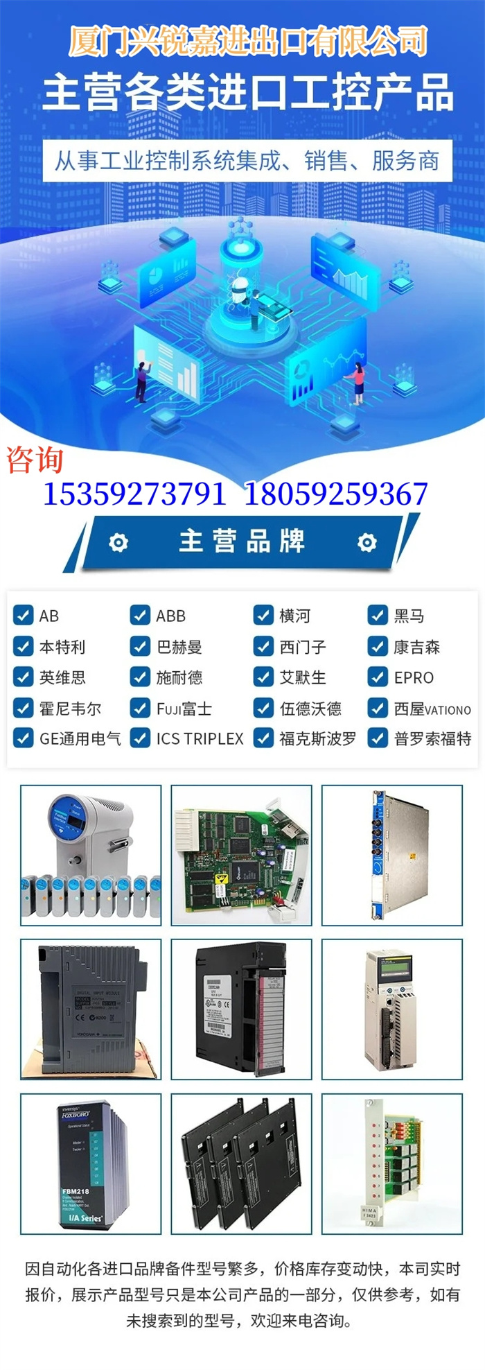厦门兴锐嘉公司主营:世界知名品牌的PLC、DCS系统备件模块,优势供应,充足库存