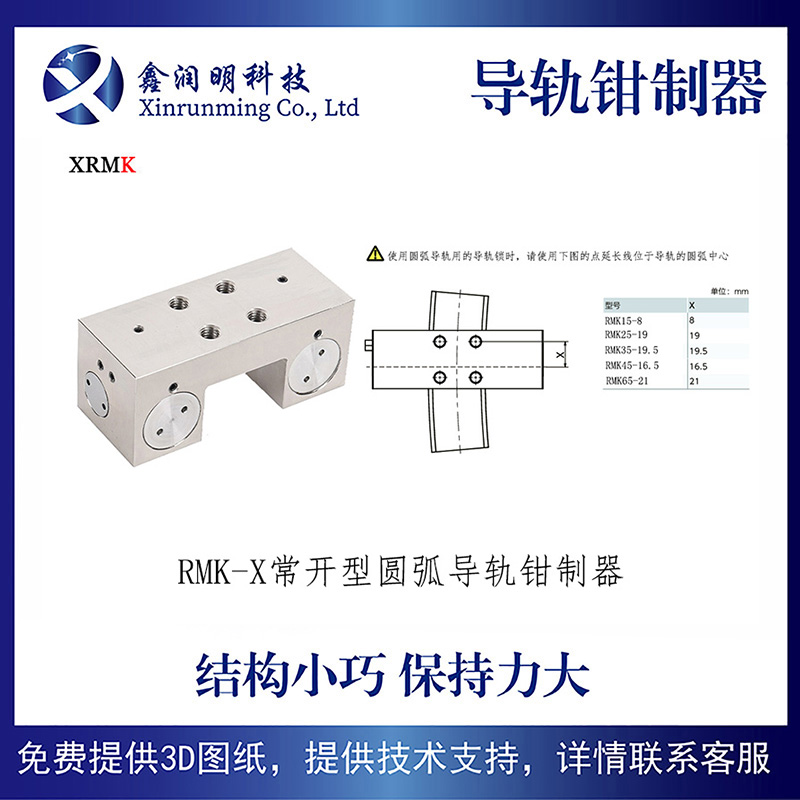 鑫润明RMK气动常开型圆弧导轨钳制器替代进口导轨锁定制