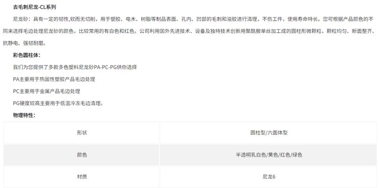 去毛刺尼龙-CL系列尼龙砂聚酰胺单丝加工成的圆柱形微颗粒