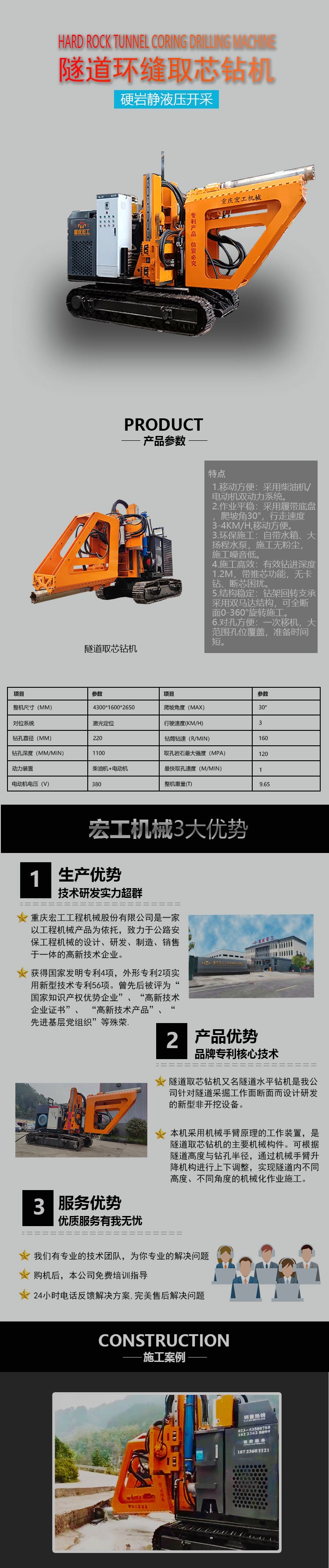 渝宏牌履带式隧道环缝取芯钻机出租打孔钻机水磨钻