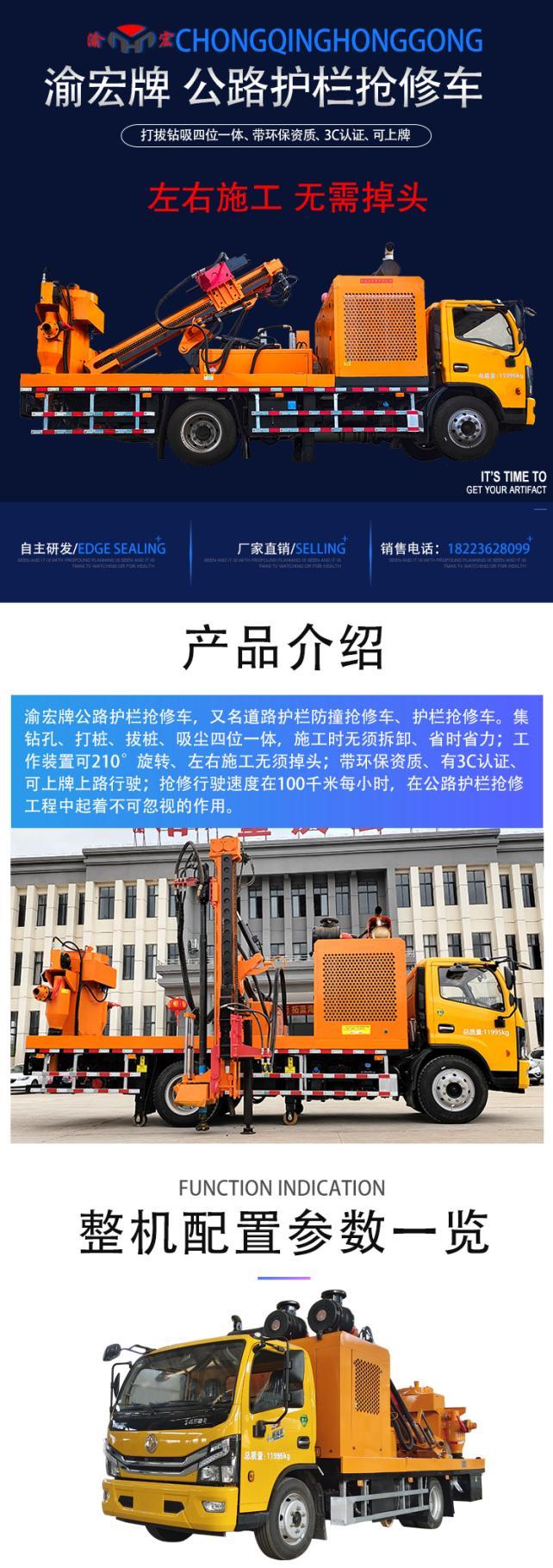 渝宏牌防撞护栏抢修车140KW东风多利卡底盘16MPa液压系统