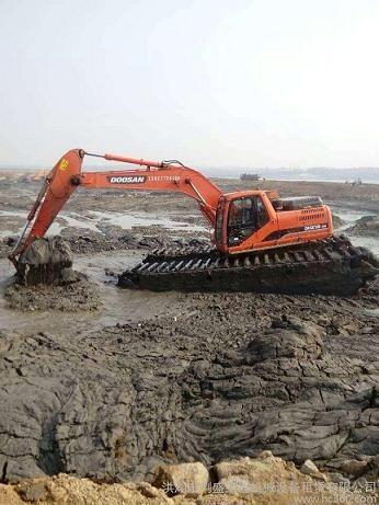 水陆两用挖掘机,是专门为工程船舶及常规工程机械无法进入和施工的沼泽地,海涂,淤塞沟渠等111区域进行开挖,清淤而研制的。是一种可自行出入泥沼,水域及河坡堤岸的超低比压挖掘。 水陆挖机总宽4米2, 不需要拆装,平板车可直接托运,减少运输费用, 方便快捷。 品质好 价格优(可以包月、可按土方计算、按小时计算)