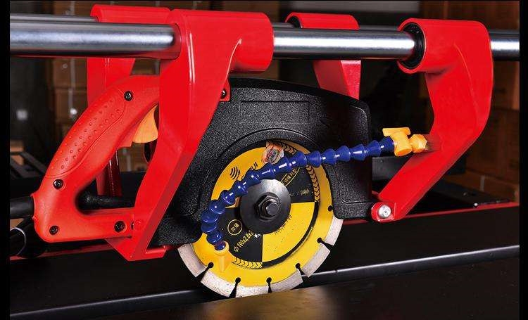 一台让您高效工作的瓷砖切割机,带有切割台面,操作方便,省时省力。自带喷水系统,无尘切割更环保。45度斜切,楼梯开槽都可以。