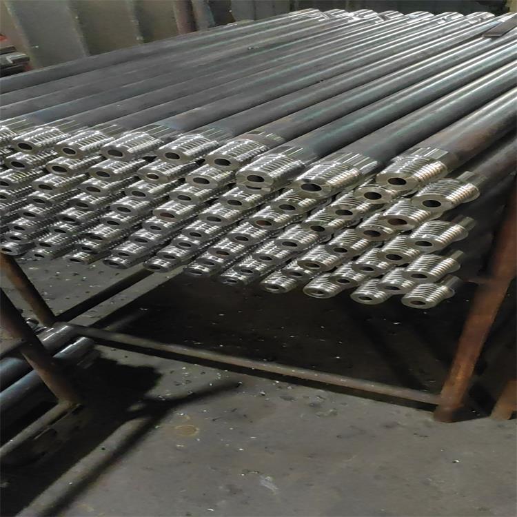 潜孔钻杆(外平钻杆)主要应用于凿岩破碎、锚固钻孔,地热空调孔、水井钻孔等。管体均采用国内的大型钢铁企业生产的材料,管体两端采用了内加厚工艺,摩擦焊接后进行了回火处理,钻杆接头粗加工后调质热处理,精加工后表面氮化处理,有效了粘扣、断口、外径胀裂等失效机率,更耐磨,易于拆卸。全部采用精密的进口数控车床,定制成型刀进行螺纹加工,的螺纹均配置了符合的螺纹规,因此生产的钻杆质量稳定、,使用周期大大加长。