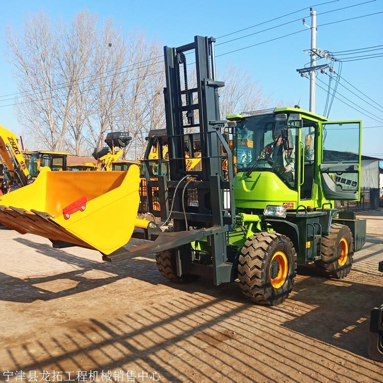越野叉车发动机功率大,采用全轮驱动和越野轮胎,因而能够在臣陵、山地、滩头、沙地、雪地、冰上及泥泞道路上行驶,越野叉车具有良好的越野性能;越野叉车车架有边梁式相中部铰接式几种,门架有否直门架式、液压伸缩臂式和连杆前移式等多种,无论哪一种,都能确保作业中的可靠性。越野叉车车身宽大,能承载不规则和宽大的货物。离地间隙高,可以跨越场地上的障碍物。有四驱功能,可以在泥泞的场地工作。越野叉车适用于建筑工地 矿山 果园牧场 路面粗糙的工矿企业等我们一般使用的叉车严格的来说,是工业用叉车。