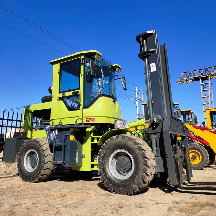 中首重工越野式叉车又叫叉车,是在机场、码头、车站等路况条件较差的物资集散地装卸物资的设备,它具有良好的机动性、越野性相可靠性。越野叉车的速度高于普通叉车,目前已发展到72Mm/h,其机动性显而易见;越野叉车发动机功率大,采用全轮驱动和越野轮胎,因而能够在臣陵、山地、滩头、沙地、雪地、冰上及泥泞道路上行驶,越野叉车具有良好的越野性能;越野叉车车架有边梁式相中部铰接式几种,门架有否直门架式、液压伸缩臂式和连杆前移式等多种,无论哪一种,都能确保作业中的可靠性。越野叉车车身宽大,能承载不规则和宽大的货物。离地间隙高,可以跨越场地上的障碍物。有四驱功能,可以在泥泞的场地工作。越野叉车适用于建筑工地 矿山 果园牧场 路面粗糙的工矿企业等我们一般使用的叉车严格的来说,是工业用叉车。