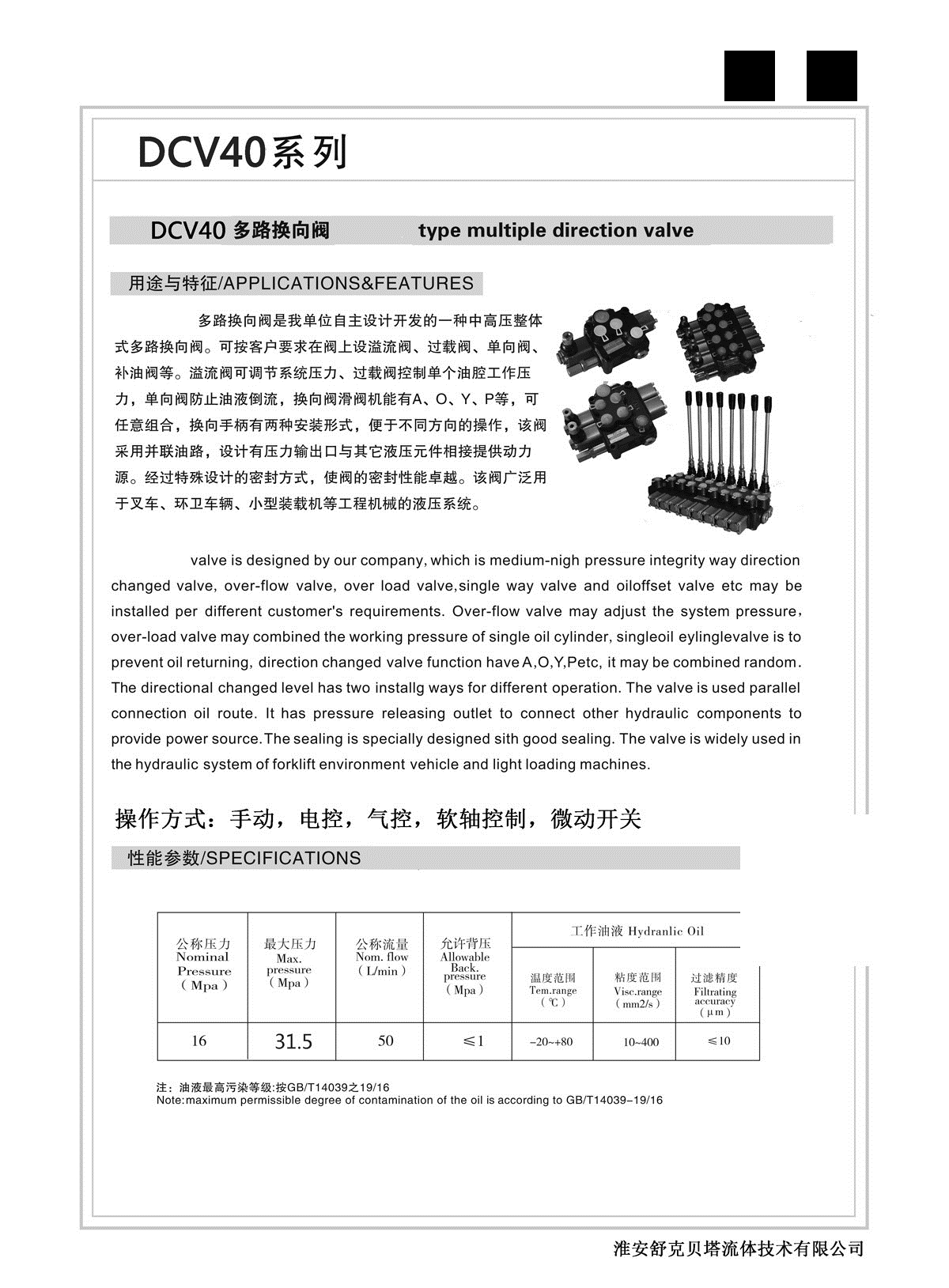 多路阀是由进油阀片、换向阀片和回油阀片组成。多路阀的回油体带有压力输出口,可与其它液压元件串联使用。该阀具有结构紧凑,工作压力较高,性能好,工作可靠,可实现多个执行机构的近、远程控制等优点。广泛应用于工程机械、矿山机械和其它机械的液压系统。