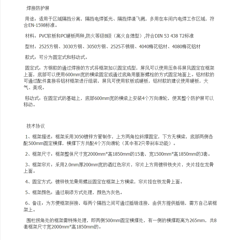 品名 | 焊接防护帘,焊接防护屏 挡板 | ||