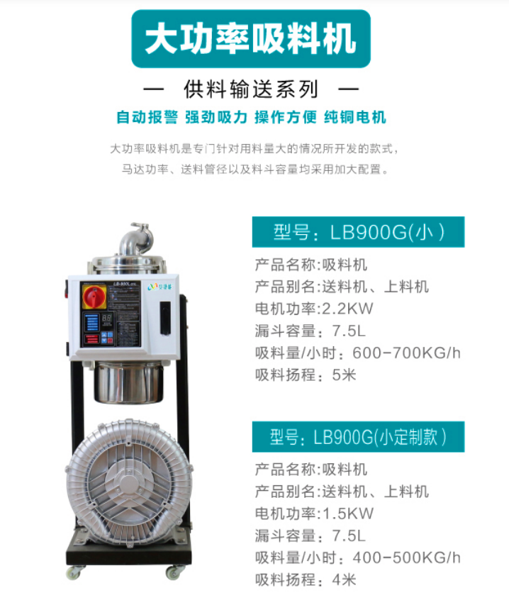 首先我们要了解自动吸料机的结构和原理,自动吸料机是利用马达吸真空形成负压,将塑料颗粒吸入小料斗内,通过平衡块(配重块)和平衡杆控制,使塑料颗粒进入干燥机内。