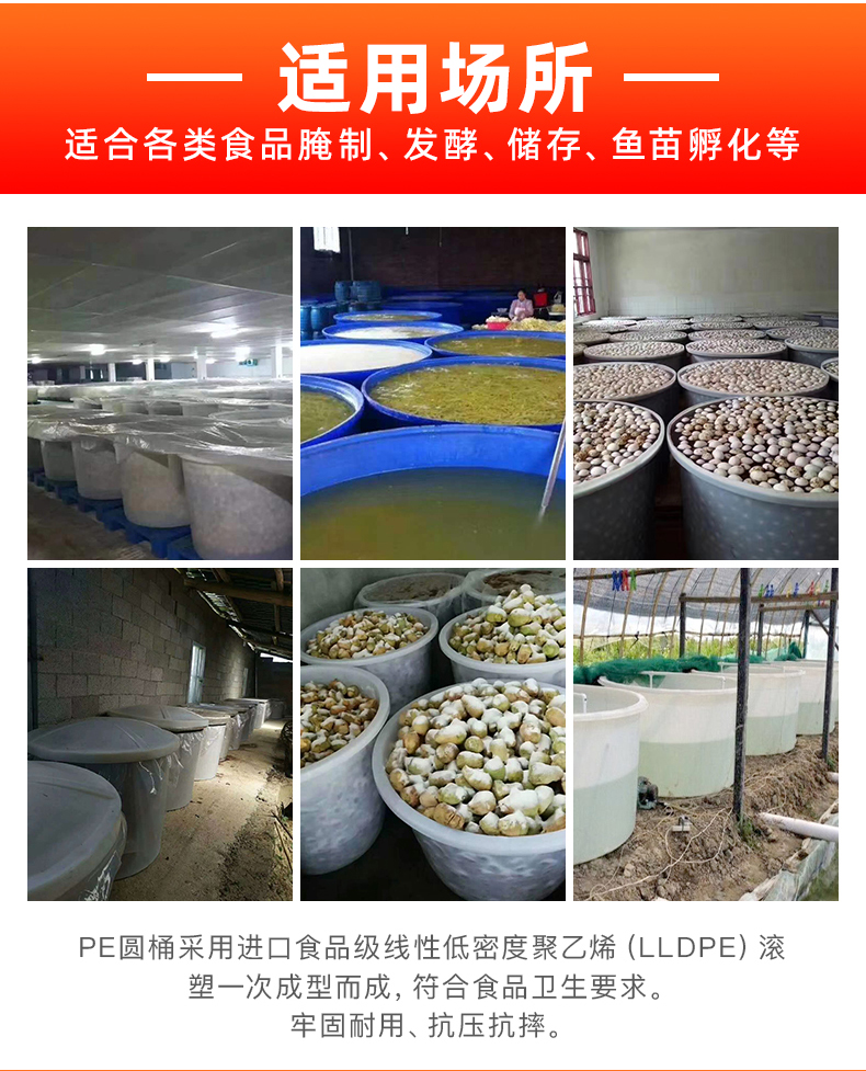 产品用途:广泛应用于食品加工中的存储,周转,清洗,肉类腌制,蔬菜加工行业的存储发酵,腌制。化工行业的酸洗;食品,化学中的拌料,兑制。